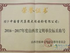大齿公司荣获“2016-017年度山西省文明单位标兵”称号