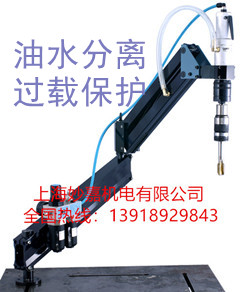 气动攻丝机主轴,回旋臂,固定座,油水分离器,八个安全扭力筒夹,扭力调节扳手一把,六角扳手一套,螺丝刀两把